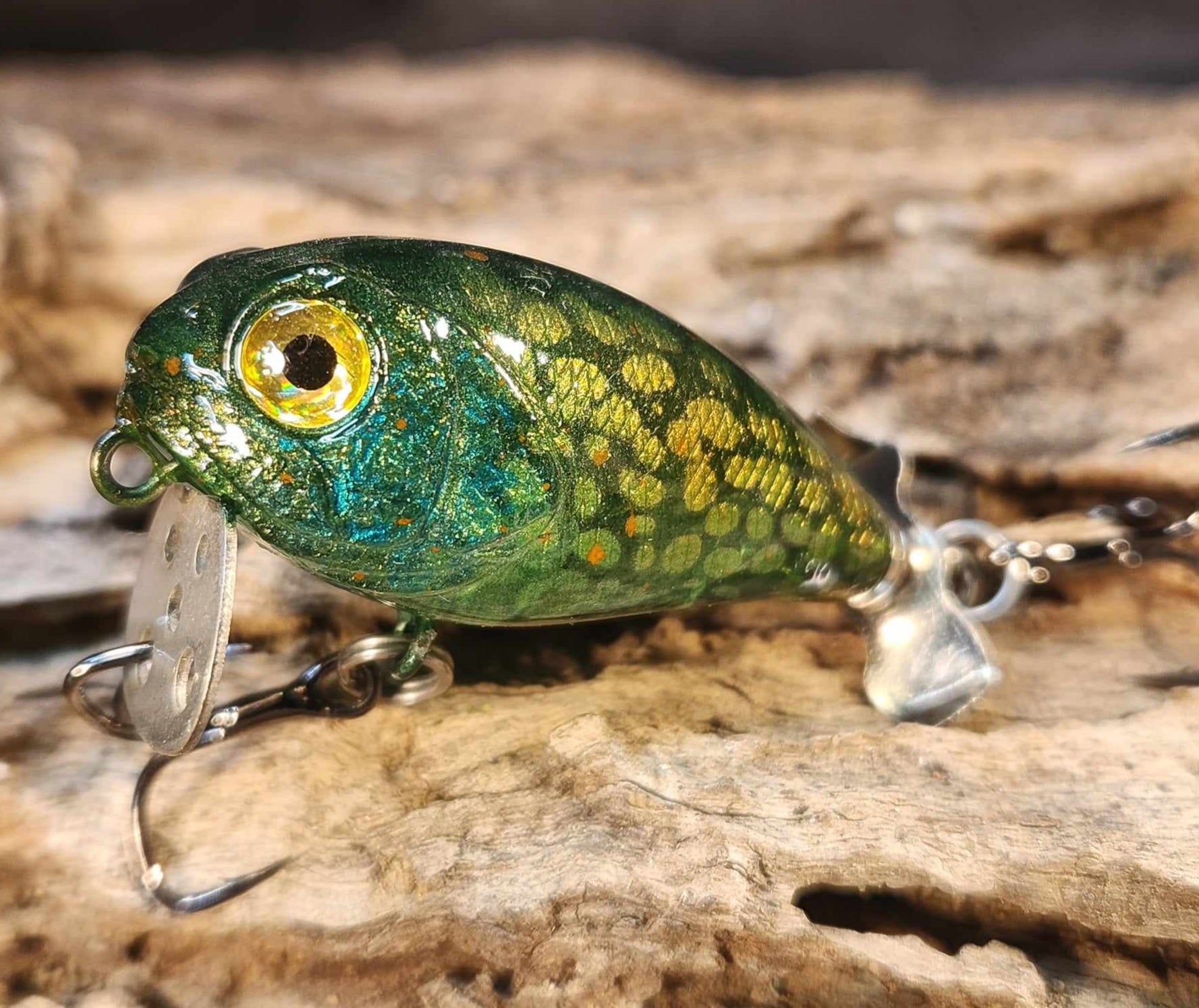A unique super shallow crank bait "Bubble crank" is designed to be fished at the surface. The drilled titanium lip and tail prop makes water bubbles.