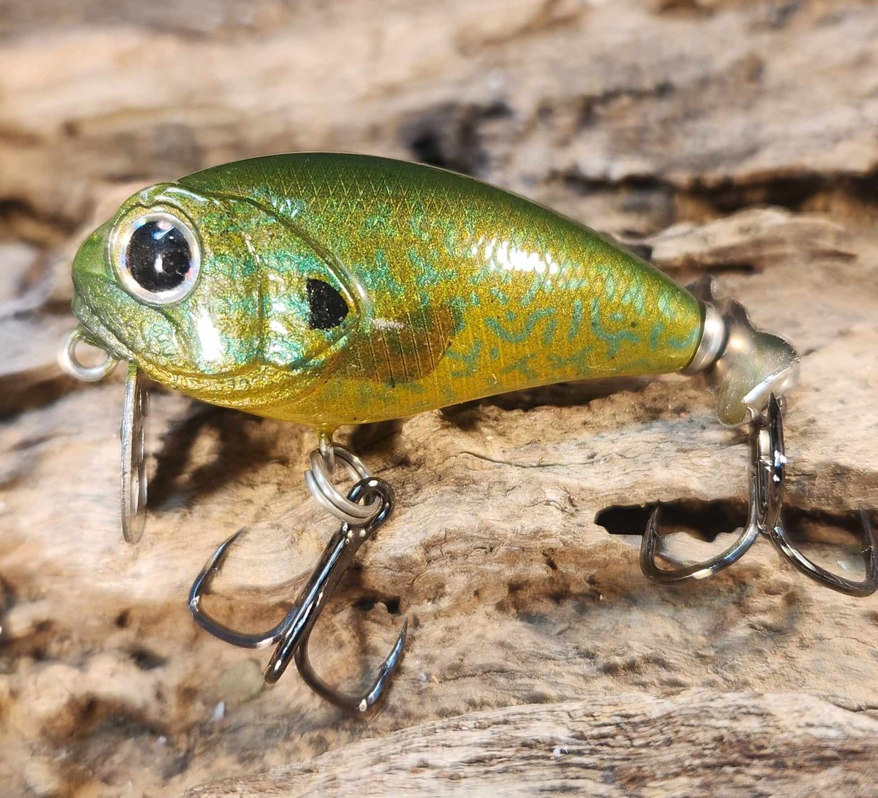 A unique super shallow crank bait "Bubble crank" is designed to be fished at the surface. The drilled titanium lip and tail prop makes water bubbles.